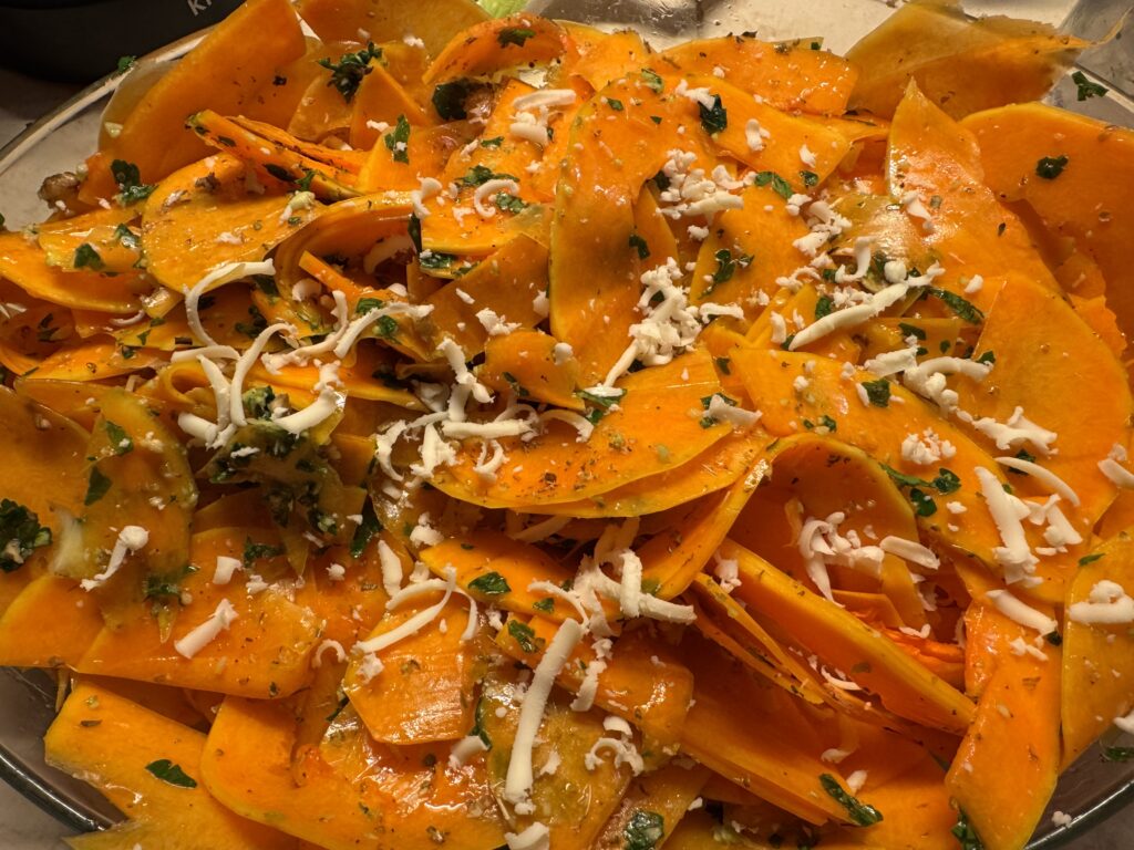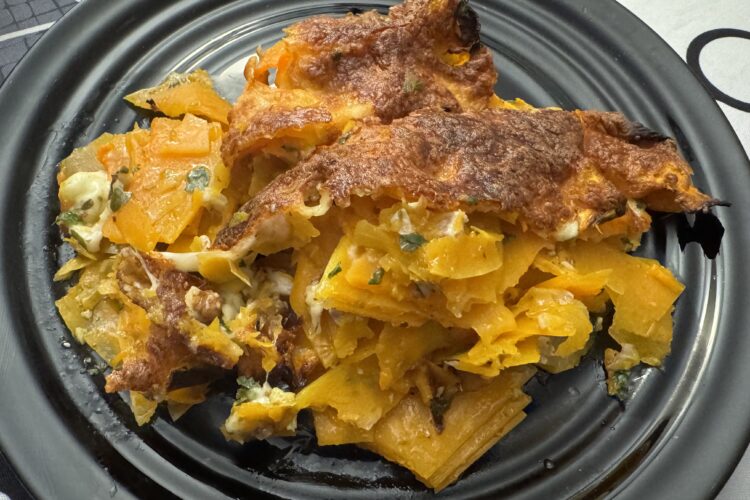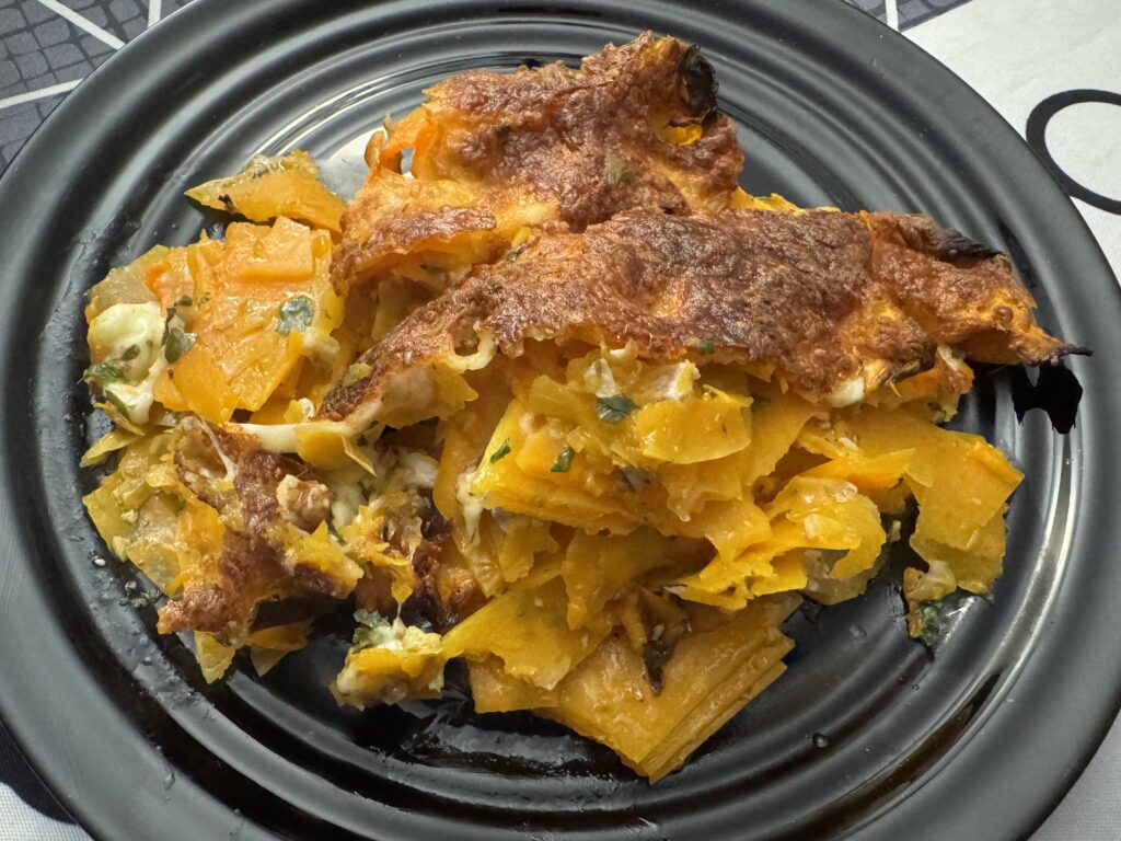 Vous en avez marre des soupes de butternutt ? Passons à un gratin pour changer un peu, recouvert de scamorza, ce fromage fumé à pâte filée italien.