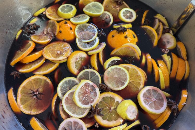 • Coupez l’orange et le citron en tranchez et ajoutez les au vin