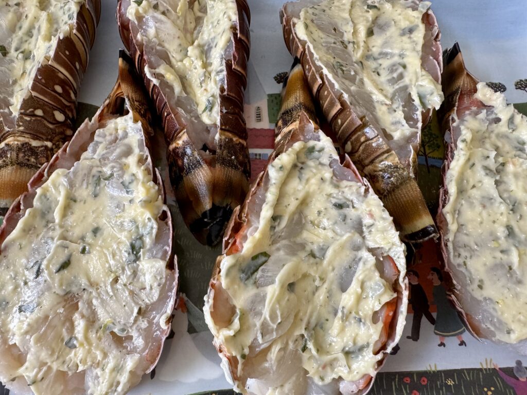 Des langoustes que nous avons fait griller au barbecue, mais vous pouvez les faire au four ou au grill.