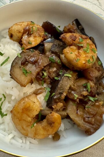Une recette vietnamienne 🇻🇳 savoureuse ! Ces crevettes sautées aux aubergines (Tôm xào cà tím) sont à essayer ! À accompagner de riz parfumé.