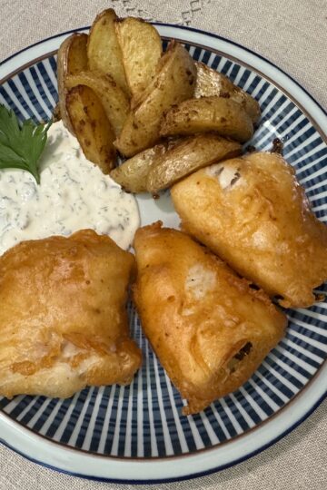 Bon, ok, ici c’est un « Fish and potatoes » 😅 Du cabillaud frit dans une pâte légère à la bière, accompagné d’une sauce tartare et de frites, c’est la recette qui plaît à tous !